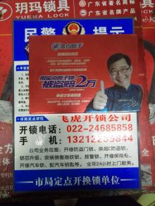 飛虎開鎖有限公司天津分公司全年24小時上門服務(wù),主要從事開鎖、修鎖、換鎖芯、安裝鎖具、貓眼、對講門、改門把手,承包鎖具工程的改造,開修各種保險 柜、文件柜、異型鎖、磁力鎖、電子密碼箱鎖、防盜門、各種高、中、低檔汽車鎖,配精密高端鑰匙、電子芯片鑰匙及國外異形鑰匙等。并經(jīng)銷各種高中檔防盜門、 木門、室內(nèi)門、指紋門、各式各樣鎖芯、各種各樣的鎖具及開鎖工具。